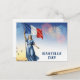 Patriotic BASTILLE DAY-hälsningskort, med konturen karta kombinerad med TRICOLORE-flagga av FRANKRIKE. På högerna står Fransken motto - Liberté, Egalité, Fraternité och under det står Joyeux Quatorze Juillet (belyst den 14 juli i Lycklig).