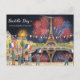 Patriotisk BASTILLEDAGEN gratulationskort, med kartans kontur kombinerad med Frankrikes TRICOLORE flagga. På höger sida står det franska mottot - Frihet, jämlikhet, broderskap och under det står Glad Bastilledagen (lit. Glad 14:e juli)