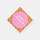 De här anpassningsbar blöjorna ger en skarp och glatt beröring till firande! Den livliga blommigten och det geometriska gränsen i rosa, orange och guld kompletterar perfekt det mjuka rosa som visar firmans namn och evenemangsdatum. Designade för ett Bat mitzvah eller liknande specialtillfälle lägger dessa blöjor till både stil och anpassning till din bord. En tankfull detalj som stärker décor i party samtidigt som gästerna känner sig som en del av firande. Fullständigt anpassade för att matcha ditt tema!
