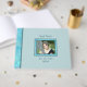 Designad som en del av min blå opal Bat Mitzvah-samling, kan denna anpassade fotogästbok anpassas för alla speciella tillfällen eller evenemang. En solid bakgrund i blek pastellblå accentueras av falsk iriserande blå opalvattenfärg på ryggen och som en ram runt ditt foto. Anpassa denna anpassade gästbok med blandade typsnitt i djupblå - sektionen i ett fantasifullt skrivstil-typsnitt ovanför fotot för namnet och det enklare typsnittet nedan för ditt evenemang och datumet. Lägg till ditt foto på framsidan av denna personliga gästbok med falsk vattenfärg i blå opal och skapa ditt eget unika sätt att fånga minnen från ditt en gång i livet-evenemang.