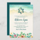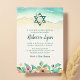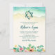 Den här elegantens strandtemat Bat mitzvah inbjudan är perfekt för din speciella dag! Konstruktionen har tropiska vattenfärgblommor, stjärnan av David och oceanen vågar på sanden.