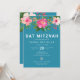 Bat mitzvah Blommigt med blå vattenfärg Modern enk Inbjudningar