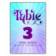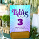 Ingen Bat Mitzvah-fest är komplett utan personliga kort för bordnummer. Låt din dotter vara stolt, glädjas och fira sin milstolpe på sin perfekt koordinerade fest. Rolig, trendig, djärv lila och marinblå typografi med modern sans serif-typografi överlagrar en bakgrund av pop-ljus turkos och lila ombre-gradientstrålar med vita prickar. Anpassa den anpassade texten med bordnumret, hennes namn och datum för evenemanget. Vänligen ändra numret för varje bord du behöver och lägg till en i taget i din varukorg. Garanterat att skapa stilfullt bohemiska minnen från hennes tillfälle. Matchande och koordinerade inbjudningar, kuvert, adressetiketter, klistermärken, minnesalbum och andra Bat Mitzvah-godisar finns också i denna trendiga och speciella kollektion. Skriv bara in bordnumret, hennes namn