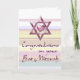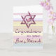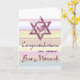 Gulligt och rosor är detta ett trevligt kort som ska överföras till en ung flicka, som firar henne som är bat mitzvah, och det nya kapitlet av henne liv. Presenterar en rosa davidsstjärna och en rosa hjärta i centrera. Pastell görade randig bakgrund och en trevlig verseinsida… som du kan skräddarsy.