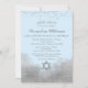 En Bat mitzvah inbjudan från elegant blå och silver med silver glitter konetti överst och silver som glappar vid grund med en glitter av David från silver.