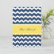 Anpassningsbar Bat mitzvah fester bjuder in till elegant, klarbult citrongult, mörk navy blue och white retro chevrons zigzags vintage mönster. Lägg till namn och party-information för en unik och snyggt Bat mitzvah partiinbjudan.