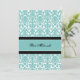 Anpassningsbar Bat mitzvah partiinbjudningar i elegant turkosa blått, svart och vitt mönster för dämpad klassisk blommigt. Lägg till namn och party-information för en unik och snyggt Bat mitzvah partiinbjudan.