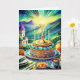 Bilden på framsidan visar en Bat Mitzvah-firande med mat, ljus och en Davidstjärna. Inuti står det "Mazel Tov! Din fest är en stor glädje." Anpassa med hennes namn och annan information. Eller byt hälsningen till en av din egen. Mazel Tov!