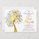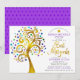 Bat mitzvah Lila guldfärgskript Livets träd Inbjudningar