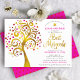 Bat Mitzvah Röd Guld Folie Livets Träd Modern Kraf Inbjudningar