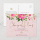 Bat Mitzvah Rosa Blommönstrad Akvarell Modern Kali Inbjudan Vykort