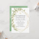 grönt för trendig och vit vattenfärg lämnar bat mitzvah inbjudan med guld geometriska ram.