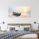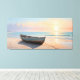 Föreställ er den gyllene sol på ansikte, havsabborre i ditt hår och en vacker strand som sträcker sig så långt man kan se. Ta in kvällens frid i ditt hem eller arbetsyta med det här elegant kanvastrycket, med en enkel träbåt på stranden vid "gyllene timmen" före solnedgången. I teckningen fångas en isolerad strand i tidigt på kvällen, i en attraktiv vattenfärg i stil. Med mjuk, sommarpastel färg av blek sand, mistblått himmel och persika framkallar bild en lugn atmosfär. Kanvastrycket är en idealisk gåva till älskare av natur och kustskönhet, som ett tillägg till strandhem, gästhus eller som ett uppmjukande tillskott till vardagsrummet eller sovrummet.