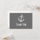 Båtsnurre Tacksamhetskort (Mörkgrå / Silver / Vit)...Dessa roliga nautiska tacksamhetskort är det perfekta sättet att tacka dina vänner och familj som var med på din nautiska bröllopsfest. Perfekt för bruden och brudgummen som har sin bröllopsmottagning på en båt eller yacht. Designen har en rolig fartygsankare. Se WindyCityStationery.com för vårt kompletta sortiment av "Båtsnurre" kort i ett brett utbud av färger samt matchande "Båtsnurre" frimärken, tack-klistermärken, returadressetiketter, save the date och mycket mer.