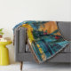 Denna kastfilt har ett originalfotografi av ZoeSPEAK av en solnedgång över hamnen. Den träpromenad som ligger mellan två båtar är upplyst av solen och ser nästan lika gulorange ut som himlen. De två båtarna ligger i skugga, i nyanser av blåaktigt vitt, och bildar en lugnande scen i komplementära färger.