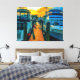 I det här Kanvastrycket visas ett originalfoto av ZoeSPEAK av en solnedgång över hamnen. Trägångvägen mellan två båtar är upplyst vid sol och tittar nästan lika gult orange som himmel. De två båtarna är i skugga, i skuggor av blåvitt, och bildar en lugnande scen i kompletterande färg.