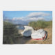 En fotografisk utformning av båtar i sanddyner och avlägsna båtar förtöjda i hamnen. Wales UK.