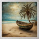 Fantasi har sett en dröm som jag har haft i åratal av en liten båt på en strand med handflatan träd.