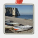 Båtar på pebbelstranden i Etretat Julgransprydnad Metall