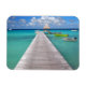 Rektangulär fotomagnet med många-båtar vid en kaj i den klara turkosplagunen på en tropisk ö i Fransk Polynesien i Stilla havet.