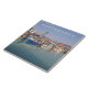 Ett vackert foto av båtar i Portsmouth i England, tryckt på en keramisk bricka i souvenir.