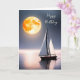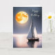 Segelbåt på havets vatten med månljus för allmän födelsedag. Text kan redigeras.