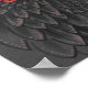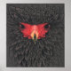 Poster med porträtt av exotisk afrikansk fågel - Bateleur Eagle, svart fågel med röd hudmask och gult beak... Dessa skövlarfåglar lever i savannor och skogsmark från Sahara till syd-Afrikan. Vävnadspapper, vattenfärg- och akrylmarkörer, sketch på svart papper, 2021 © Julia Khoroshikh #africanbird #bateleureagle #birdsofprey #animalart #birdportrait #savanna #wildlife #scavenger #ornithology #Paper collage #poster