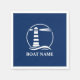Boat Custom Name eller Boat Namn med Classic Lighthouse in White på Navy Blue Party Cocktail Napkins.