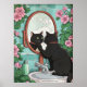 Bathroom Black Cat in Mirror Print, Funny Japanese Poster