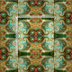 Batik Blommigt grönt röd och gult mönster Tyg