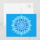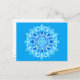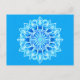 Postkort i batikstrukturerad mandala-/medaljongmönster i nyanser av akvamarin, turkos och koboltblått på turkos bakgrund