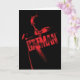 Röd stiliserad bild av Batman som håller upp sig med Batman teatralisk logotyp överst.