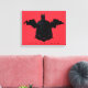 Batman-illustration framför stil skyline över Gotham City i fladdermus vinge.