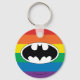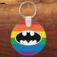 DC-Pride | Batmans ikoniska logotyp med lagrar av regnbåge färg inuti.