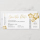 Bordspass Spara meddelandet om inbjudan till inbjudan till guld med tropiska blommor från hibiscus. All text och all bakgrund i färg är redigerbar så att du kan ändra vår unika mall för boardingkort i biljett som var designad med ett Hawaii-destinationsbröllop eller ett tropiskt resetema bröllop eller med tanke på förnyelse av våtet. Besök Anpassningsbarna Papper Works designner-samling för att få information om hur du samordnar objekten.