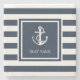 En elegant nautisk design med ankare och marinblå och vit randig mönster med ditt båtnamn i en marinblå kantad fyrkant. Designad av Thisisnotme©