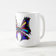 En handritad dekokryddad fjäril med övertoner från fladdermus - upplyst i vibrerande färg - som visas på klassisk mugg. Lägg till lite skönhet i drycken! Originalteckningar av Luna Jade