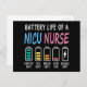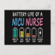 Humorous shift chart showing the battery life of a NICU nurse, also known as a neonatal intensive care unit nurse, with colorful levels from start to double shift. Ideal for neonatal nurses who enjoy relatable workplace humor.