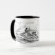 Mug with drawings of the famous German battleship Bismarck of world war II with the name of the ship written with fraktur letters.
