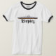 T-shirt with drawing of the famous German battleship Tirpitz of world war II with the name of the ship written with fraktur letters.