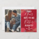 Roligt christmas platta helgdag med röd bakgrund, abstrakt cirklar, en sprinkl av faux guld glitter, och det roliga citatet "detta år måste bli bättre, höger!?", familjen namnteckning och året.