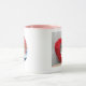 Bättre dagar före Mugg. White Mugg, Rosa Handle, Positive Message, Colorful Design, Motivational Quote. Ett vitt mugg med ett handtag för rosa och insida, med en sjudande utformning med texten "BÄTTRE DAYS AHEAD" i stiliserad stil. Bakgrunden är blå, rosa och orange, tillsammans med en illustration av ett sol, som förmedlar ett budskap om optimism och hopp.