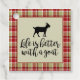 Roligtens utformning har getsilhuett med "livet är bättre med en gettext i modernt skript och maron/tan plaid gräns