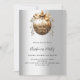 En inbjudan till jul Party. En faux silver tittar bakgrund. Dekorerad med en stor goldvintage tittar bauble. Anpassa och lägg till informationen. Svart text.
