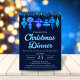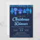 Den här julmiddagen innehåller vattenfärgsblåa bubblor överst med gräs nål och julklapp mot en marin blå bakgrund. Du kan anpassa all händelseinformation. På inbjudningens baksida finns en mönster av blå vattenfärgade julprydnader. Se hela matchningssamlingen. All teckning illustreras av och upphovsrätten skyddas av Kaitlyn Thomas.