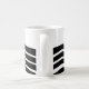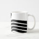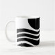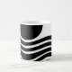 Mugg har bauhaus-design av vågigt linjer och cirklar i svart på en fält i vitt.