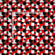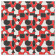 Den här strukturen har en Bauhaus-design av trianglar, cirklar, rektanglar och pentagoner i svart och vitt på en fält av rött.