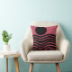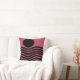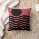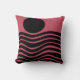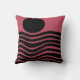 Dekorativ kudde har bauhaus-design av vågigt linjer och cirklar i svart på en fält av djup rosa.