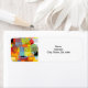 Den här returadressetiketten har en Bauhaus-design som har vågrät av färg och överlagrade former placerade överst. Färgfull, djärv, roligt!