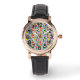 Den här kvinnoklockan har en Bauhaus-design av ett rutnät med rutor och rektanglar i rött, grönt, blått, orange, ljusblått, gult och rött.